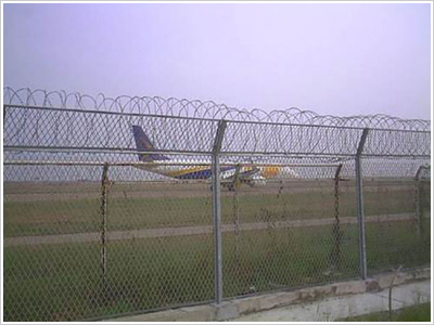 機場隔離網又稱作“Y型安全防御護網”,是由V型支架立柱加強型焊接片網,安全防盜連接件和熱鍍鋅刀片刺網組成強度和安全防御性級別很高。被廣泛應用在機場,軍事基地等高安全場所。如果在機場護欄網頂部加裝刀片刺絲、刀片刺網后又很好的增強了安全防護性能。采用電鍍、熱鍍、噴塑、浸塑等防腐形式,具有很好的抗老化、抗曬、耐腐蝕等特點。其產品造型美觀、花色多樣,既起到圍欄作用,又起到美化作用。由于具有安全性高、防攀爬