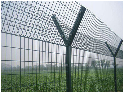 17832289222機場隔離網又稱作“Y型安全防御護網”,是由V型支架立柱加強型焊接片網,安全防盜連接件和熱鍍鋅刀片刺網組成強度和安全防御性級別很高。被廣泛應用在機場,軍事基地等高安全場所。
